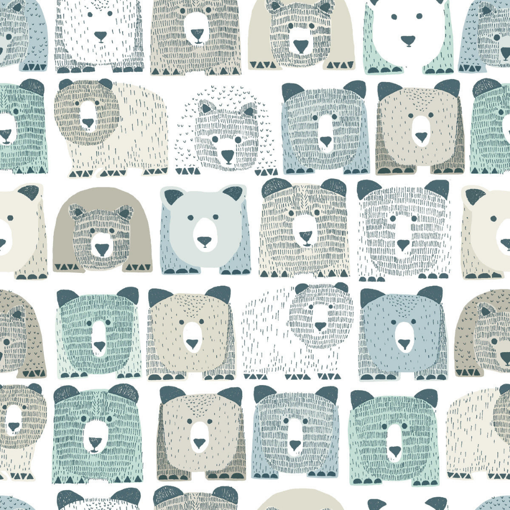 Colorful pattern Bears brings rows of fanciful sketches of this familiar forest friend front and center to create a playful allover print.