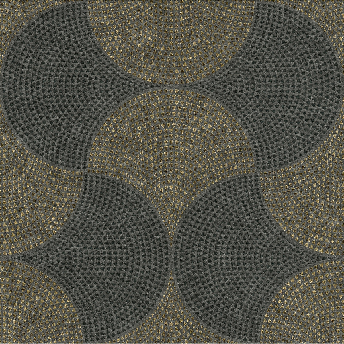 Enjoy the moody sophistication of this Art Deco-inspired wallpaper. Hundreds of small gold and black triangles create a flowing, fan-like mosaic. Bel Air is an unpasted, vinyl on non woven wallpaper.
