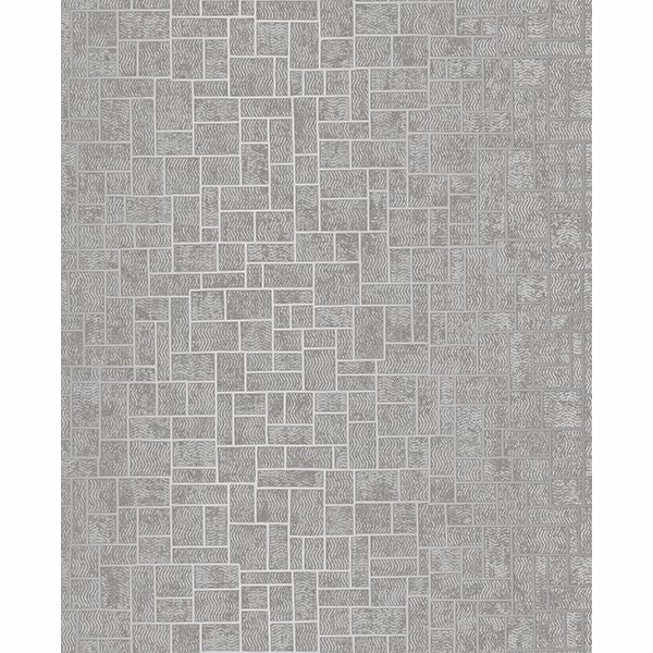 High gloss backgrounds, texture and ripple print create a dimensional wallpaper full of texture. The charcoal and gold color scheme plays with