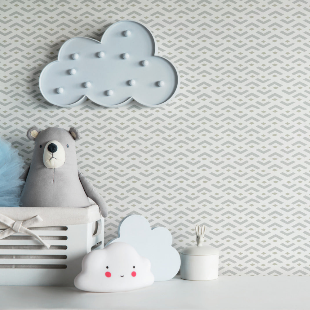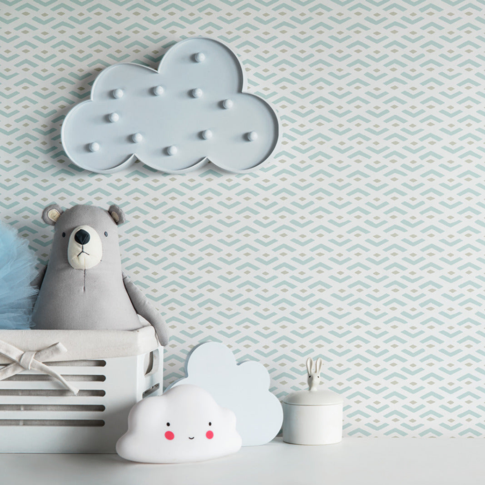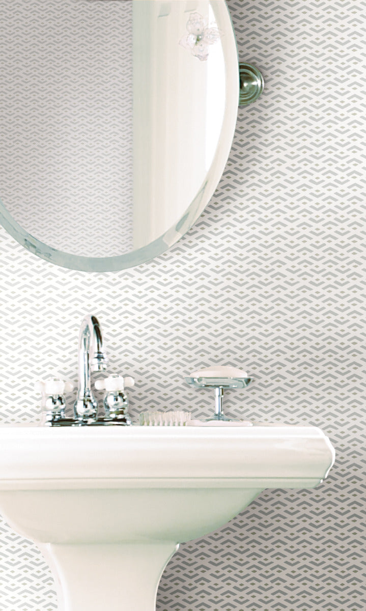 Pattern Savannah paints a landscape of fanciful geometrics in a regimented allover of arrows and diminutive dots.