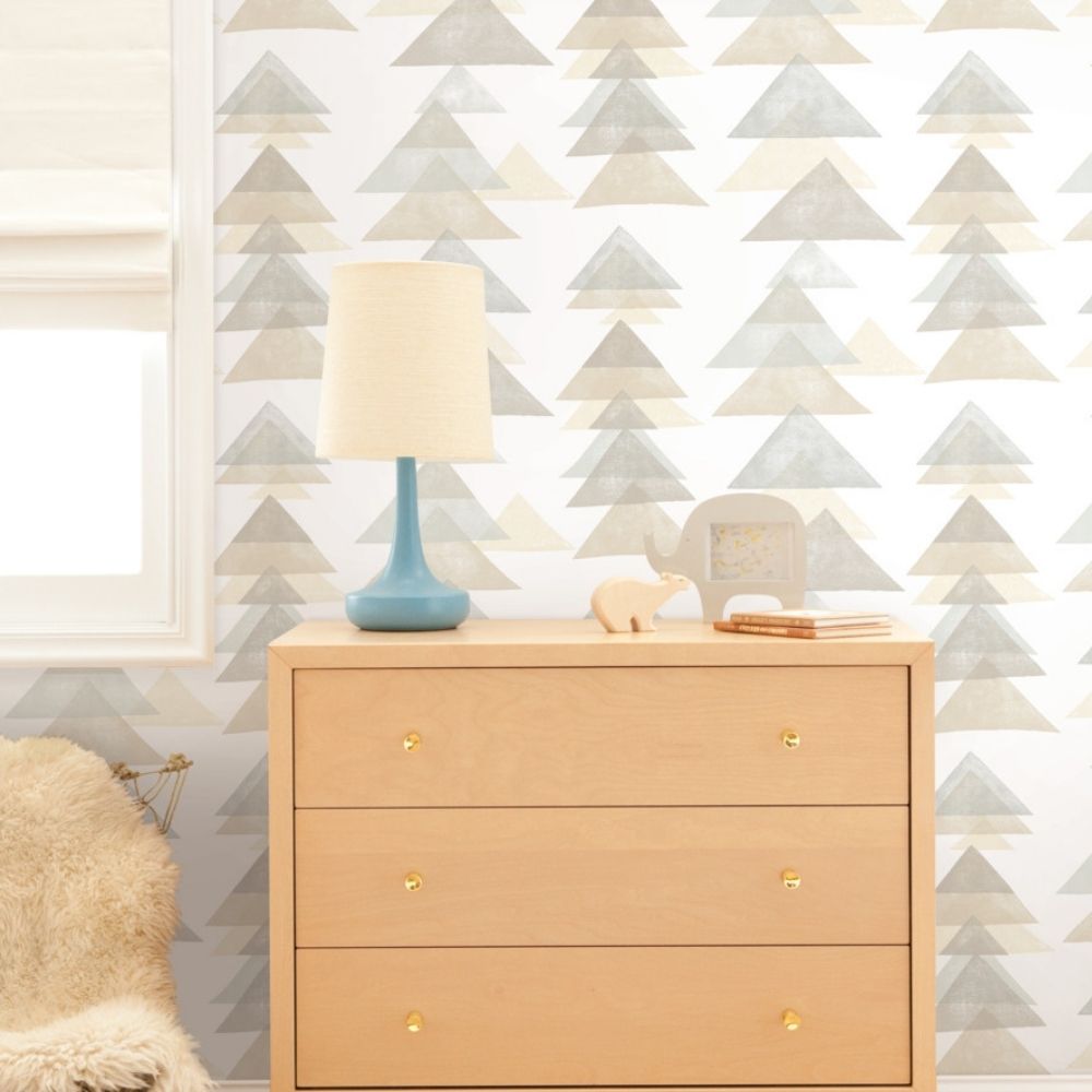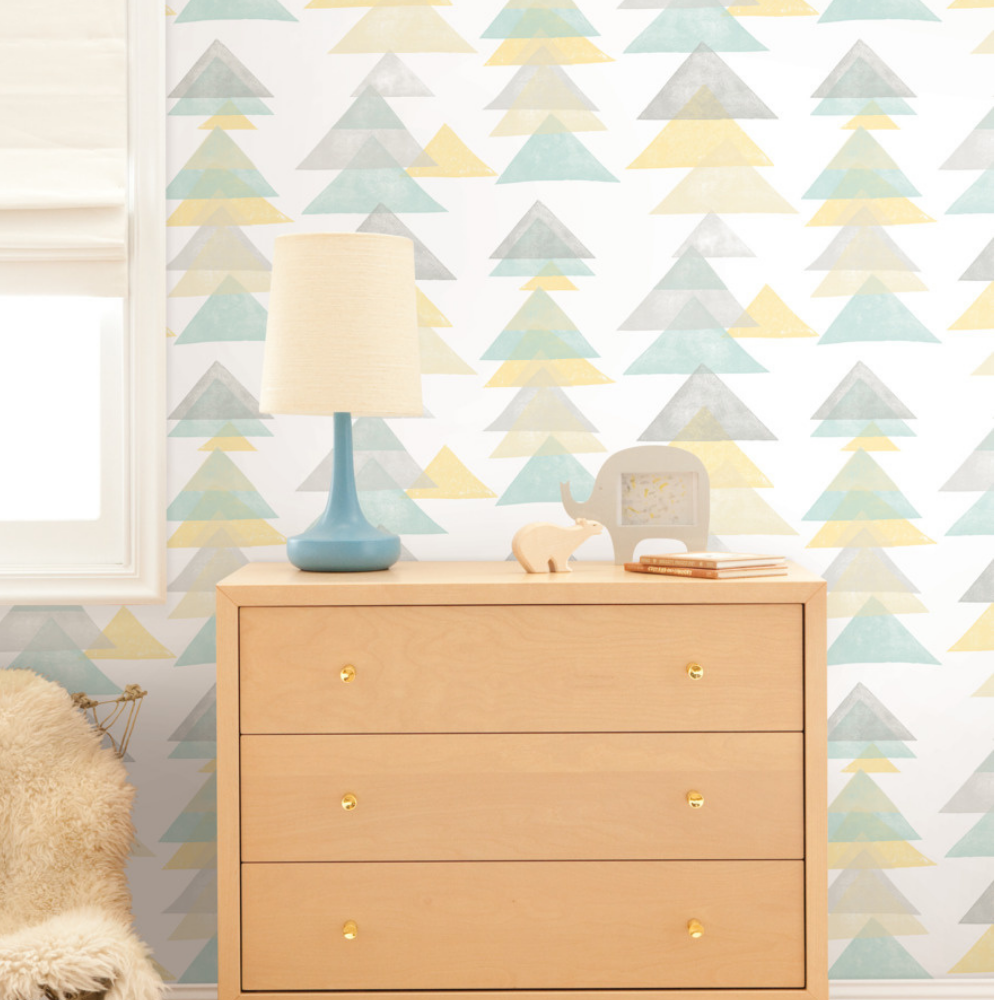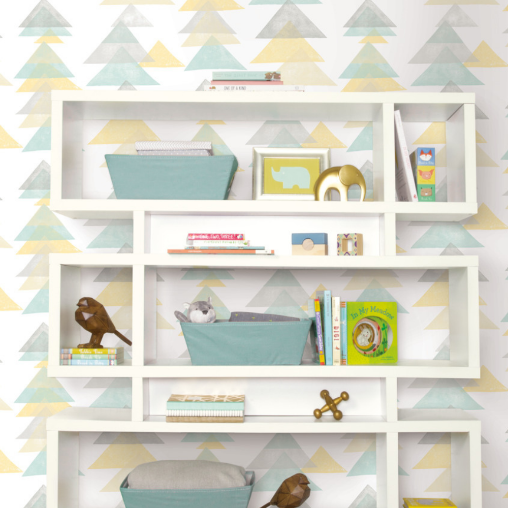 Pyramids of varying sized watercolor geometrics create a playful dance of color in pattern Triangles.